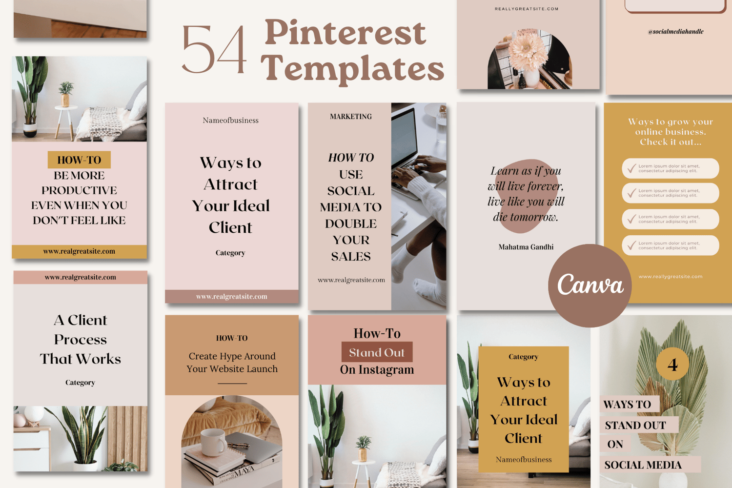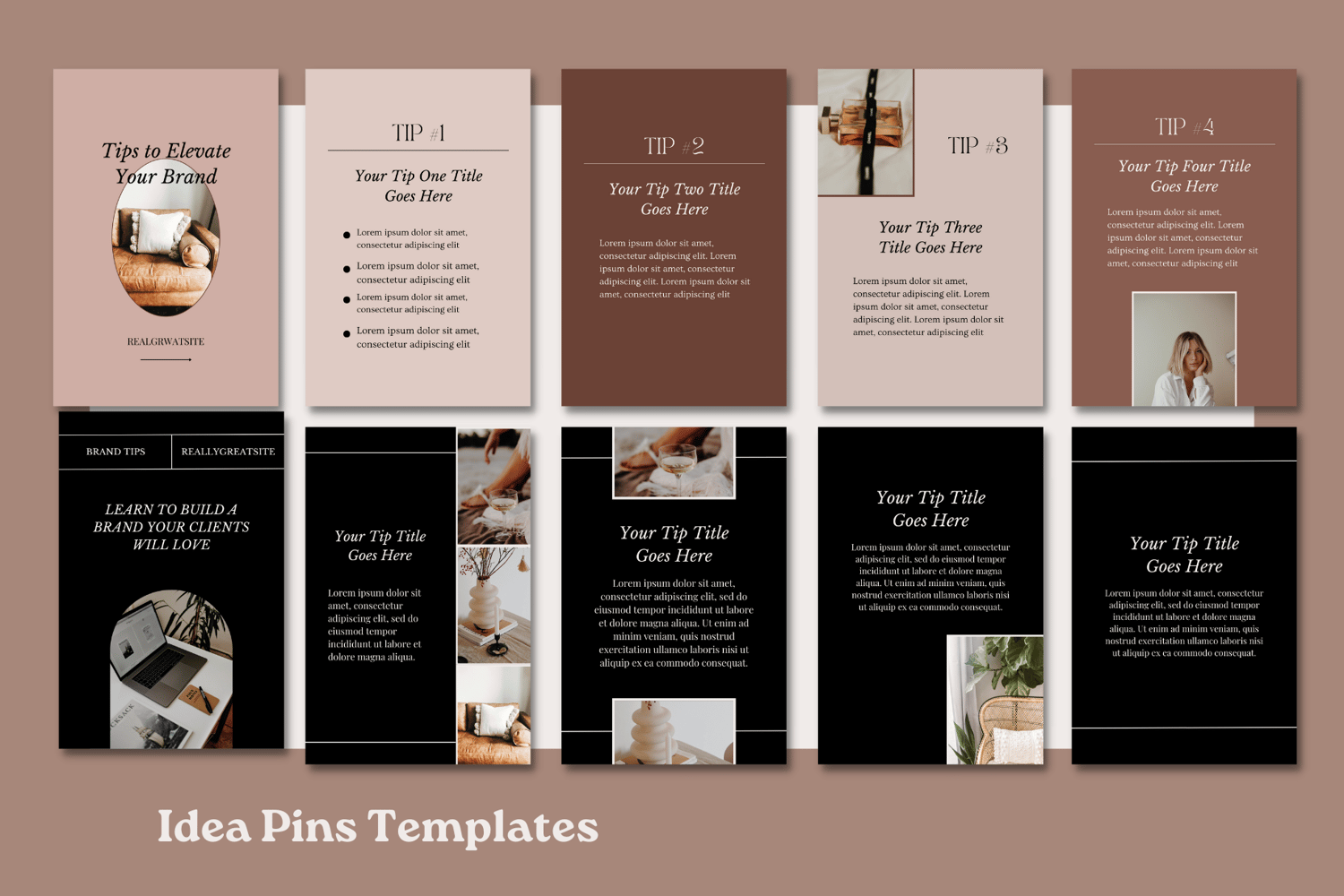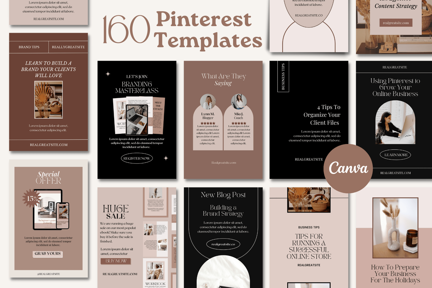 Lora Modern and Minimal for Coaches, Business Owners and Creators Pinterest Canva Templates.