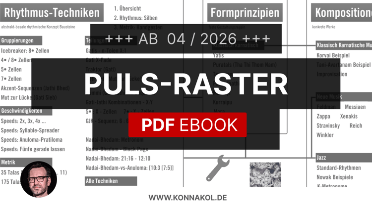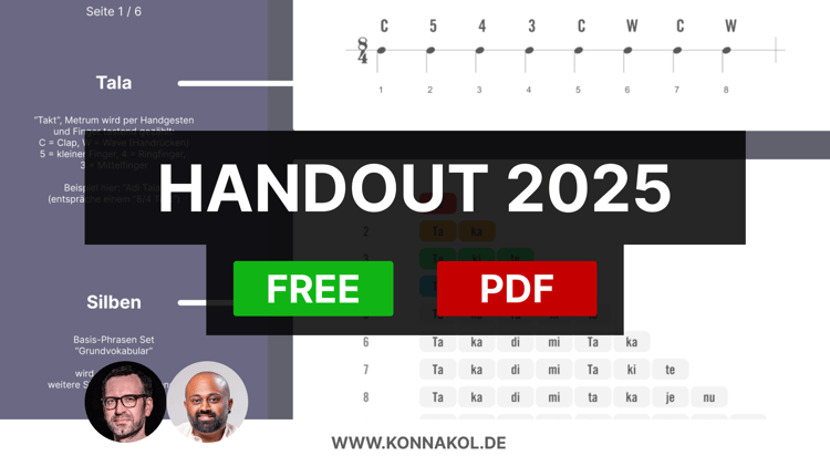 Unser diverses Netzwerk Konnakol.de Team mit Sitz in Essen NRW - bestehend aus erfahrenen Interpret*innen, Komponist*innen sowie transdisziplinär Mitwirkenden - vermittelt und erforscht, wie grundlegende und komplexe Rhythmus-Strukturen mittels südindisch inspiriertem Rhythmus Solfège" (Konnakol / Solkattu) tiefgreifend erfasst und gestaltet werden können.