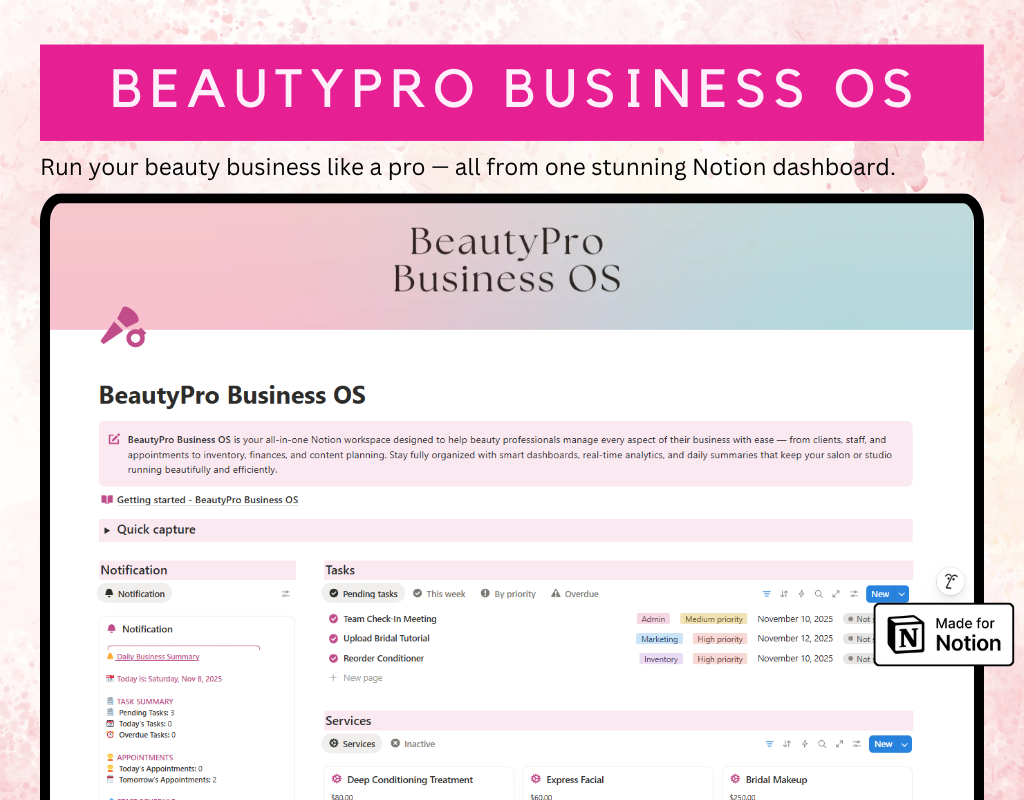 BeautyPro Business OS - Notion template