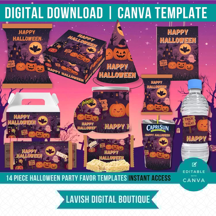 Halloween Favor Bundle Templates, Halloween Party Favor, Treat Bundle