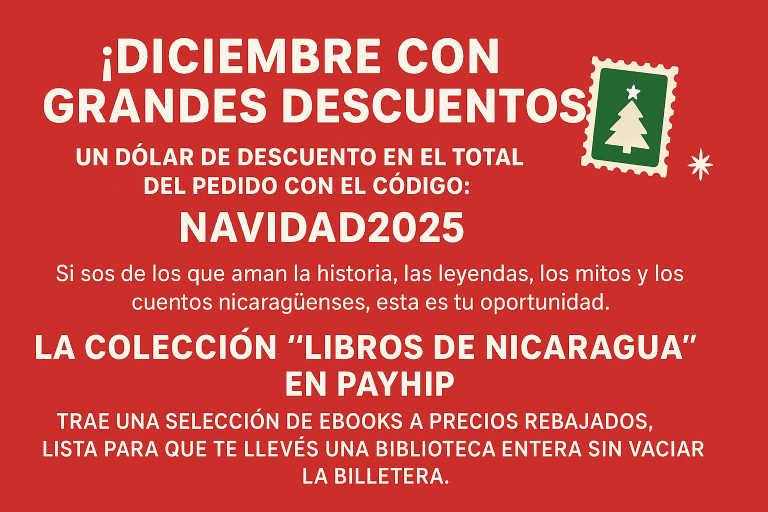 ¡DICIEMBRE CON GRANDES DESCUENTOS! Un dólar de descuento en el total del pedido con el código: NAVIDAD2025 Si sos de los que aman la historia, las leyendas, los mitos y los cuentos nicaragüenses, esta es tu oportunidad. La colección “Libros de Nicar...