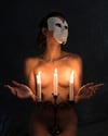 Hold the mask that protects others from your true face, burn every ounce of sin that may come through your gaze, let the fire of the candles transmute everything you flee from and regret. Free your soul in this masquerade, on this night of characters who play at being someone else because being themselves has become exhausting and overwhelming, a feast of humans who rejoice in the pleasure of anonymity, while it lasts.
