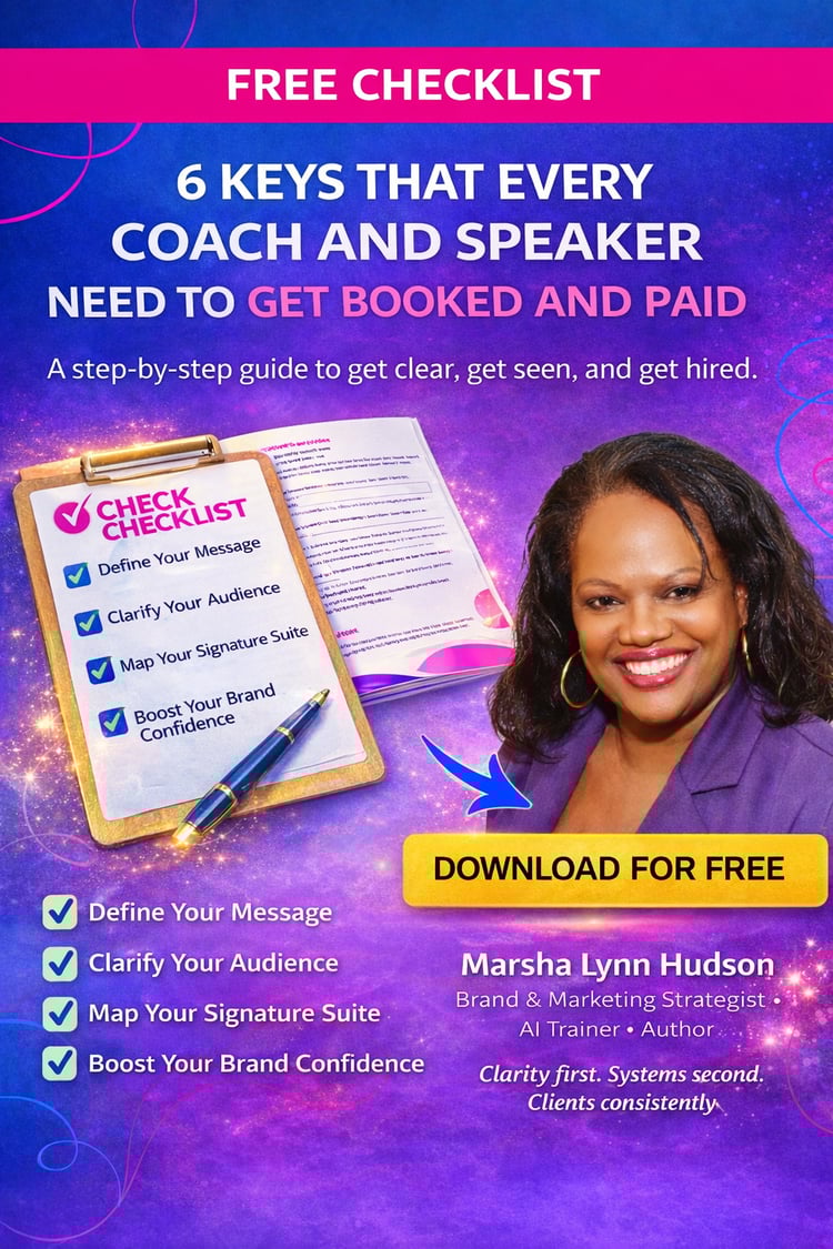 Hi, I’m Marsha Lynn Hudson – Brand & Marketing Strategist, AI Consultant, Speaker, Trainer and Coach.