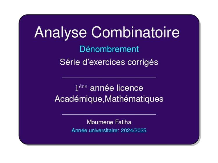 Étudiants en licence (SM, MI, ST), classes préparatoires, ou toute personne souhaitant consolider ses bases en mathématiques discrètes et analyse élémentaire.