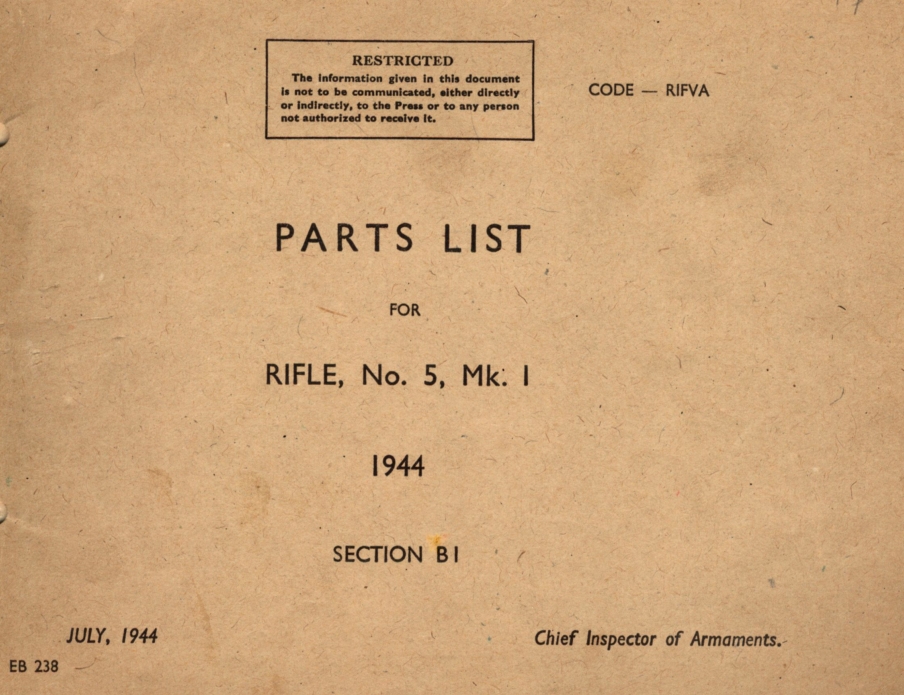 Parts List for Rifle, No. 5, Mk. I. 1944. Section BI, Chief Inspector of Armaments, July 1944