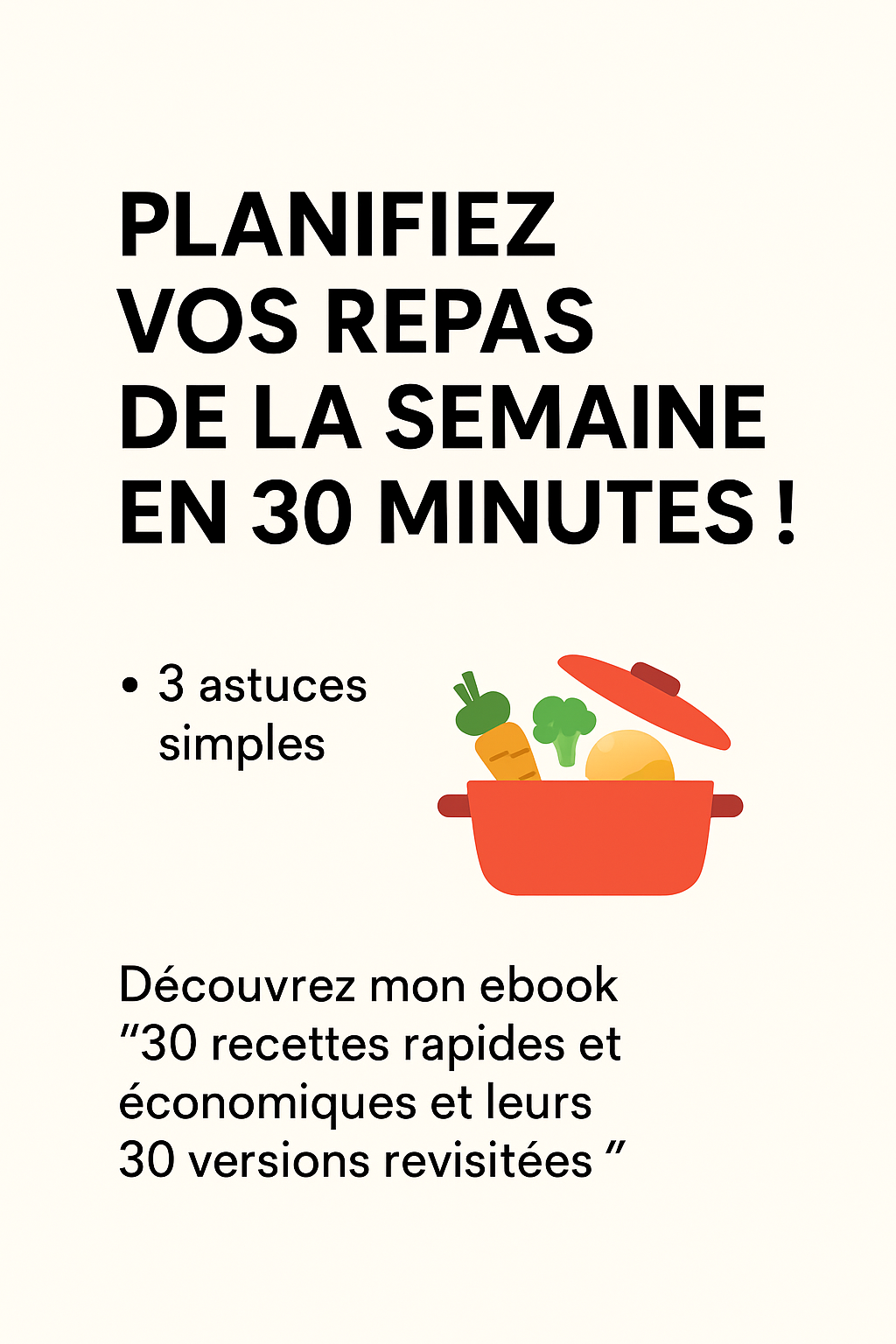 Bonjour à toutes et à tous 👋 Planifier ses repas peut sembler compliqué et prendre beaucoup de temps… mais avec les bonnes méthodes, c’est rapide et efficace ! Aujourd’hui, je vous partage mes astuces pour organiser vos repas de la semaine en seulem...