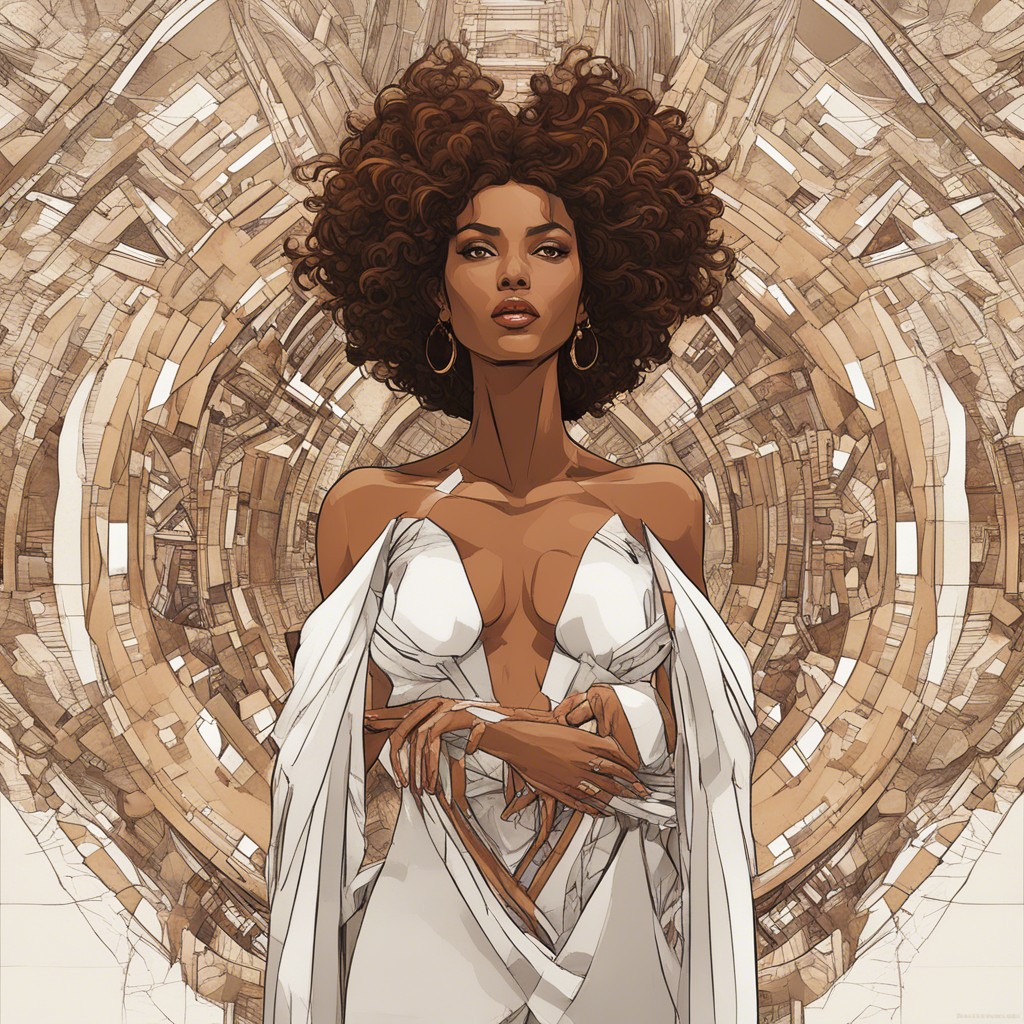 Her name is Zandi, and in the vibrant city, she's a vision of determination and style. Dressed in a burgundy paisley print dress with matching accessories, she embodies confidence and cultural pride as she pursues her mission.