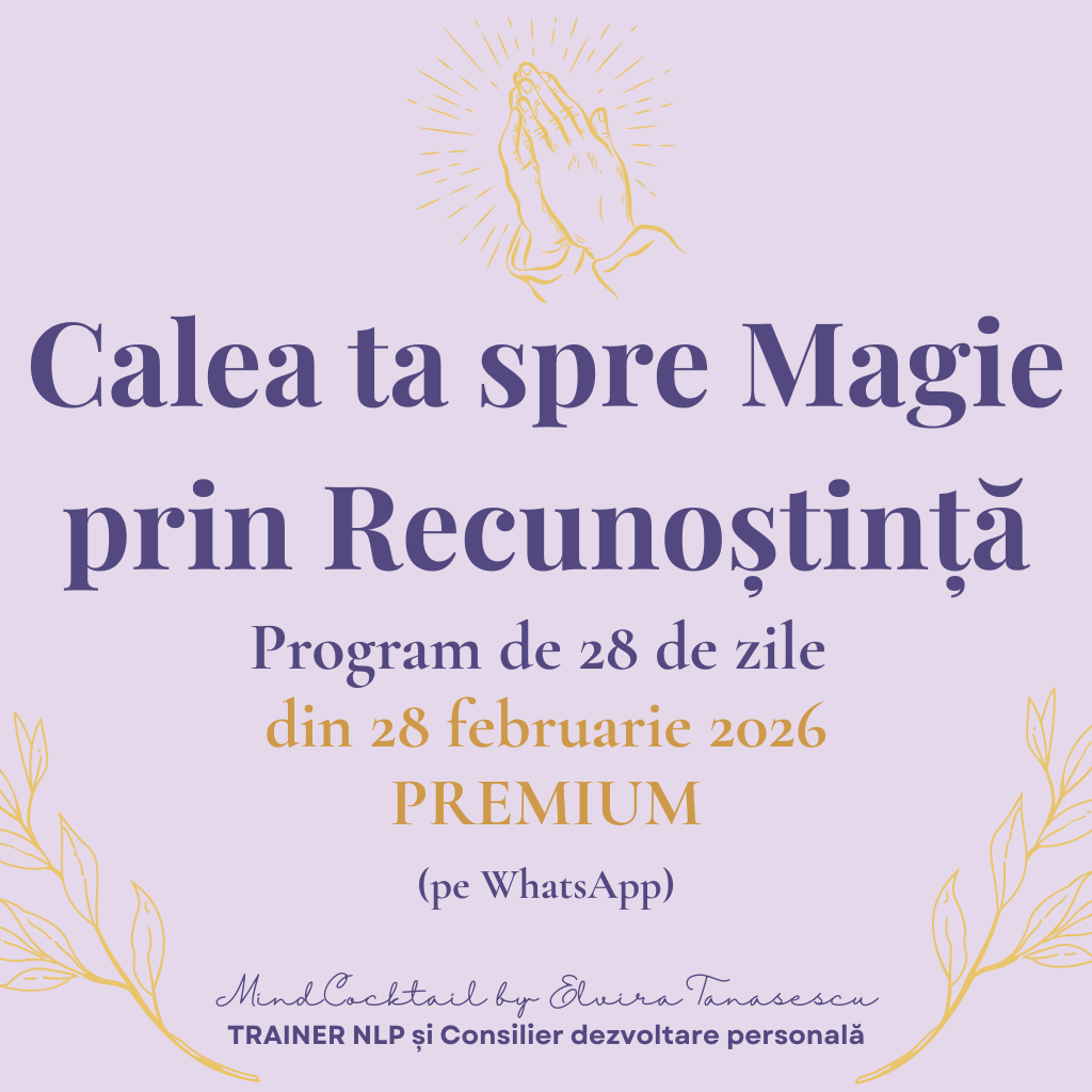 Sunt Elvira Tănăsescu – Trainer NLP, consilier de dezvoltare personală și creatoarea spațiului MindCocktail, un spațiu cu suflet pentru introspecție, vindecare și susținere.