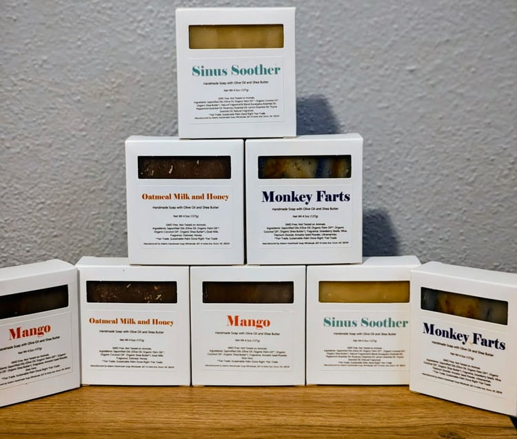 Our soaps may include nourishing oils, butters, natural colorants, fragrance oils, and skin-loving additives. Specific ingredients are listed on each product to help you choose what's best for your skin.