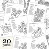 This set of hand-drawn coloring pages includes 20 iconic native wildflowers (8 new pages added 5/6!) from a variety of National Parks across the U.S. Print and enjoy at home, or spread the love by dropping off copies to your local coffee shop, library, restaurant or plant nursery.