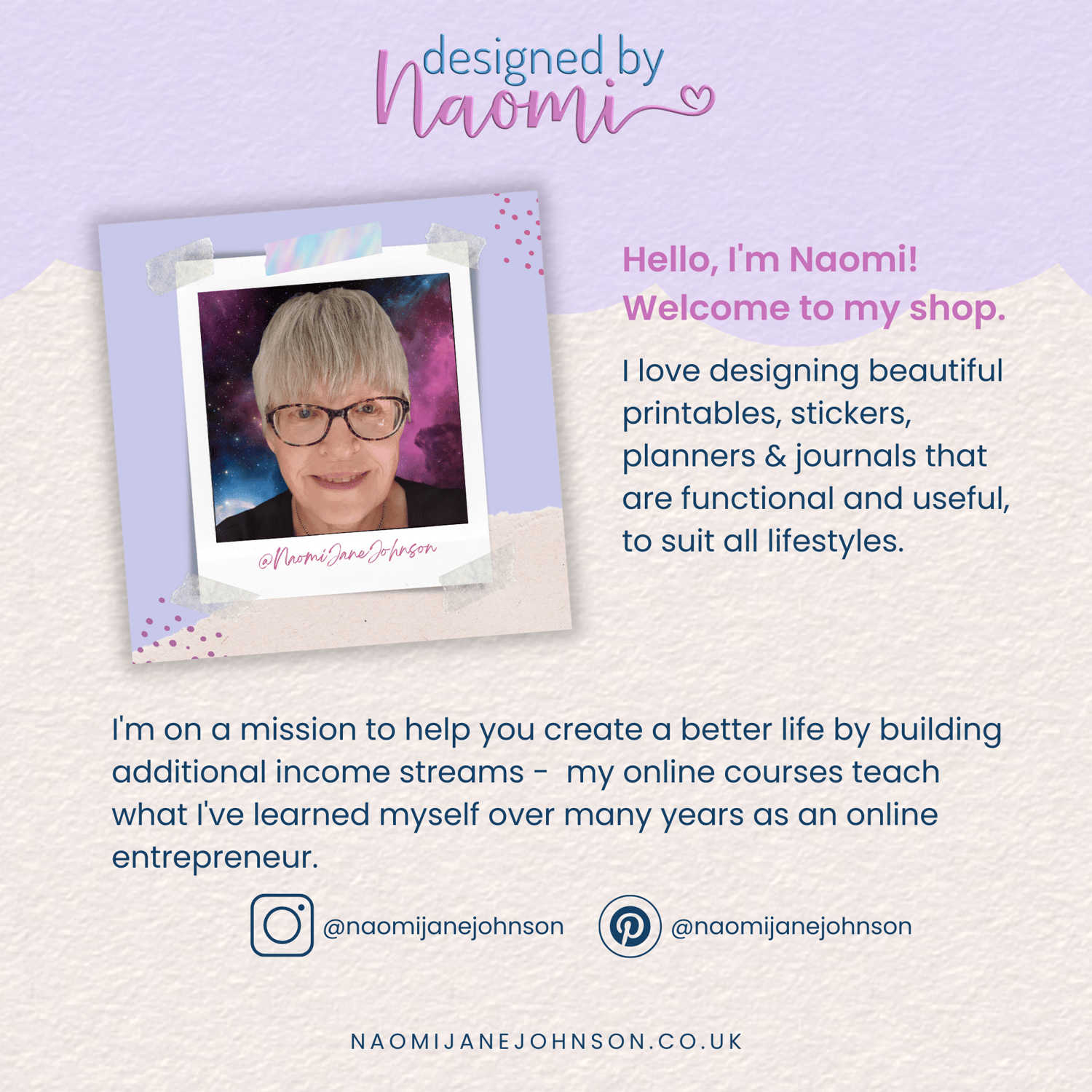 Comments, suggestions and feedback welcome - send me a message or email: hello@naomijanejohnson.co.uk