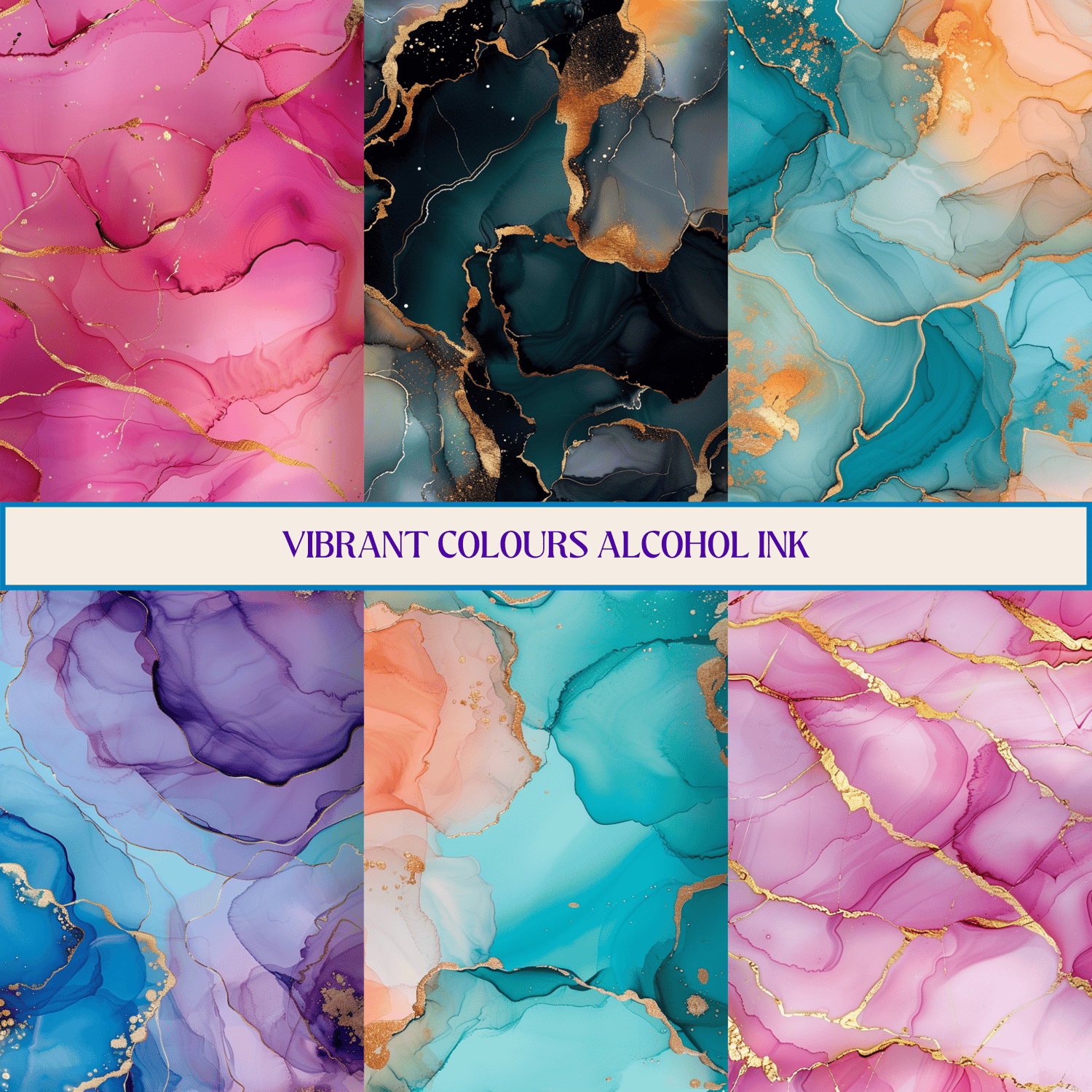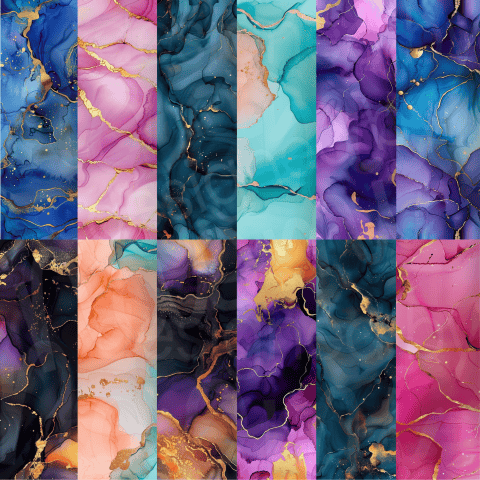 Beautifully crafted alcohol ink swirls in purple, blue, greens aqua, peach, pink with sparkling gold accents.