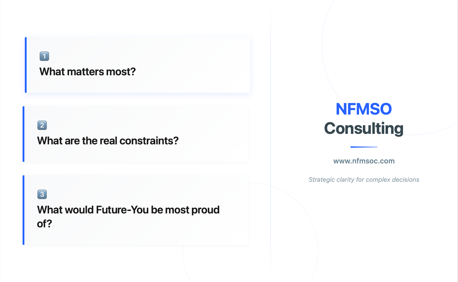 I often serve as a “second brain” for execs and lead operators, helping compress decision cycles and bring C-suite, cross-domain thinking to messy, high-stakes dilemmas. Across this work, I’ve noticed three questions that consistently unlock clarity...