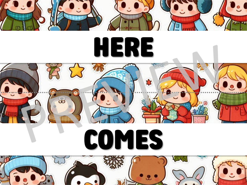 HERE COMES OUR SANTA CLAUS! Winter Bulletin Board Decor Kit, Winter Header, W