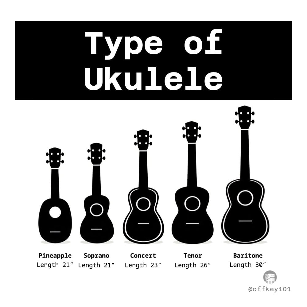 - Soprano: Smallest, bright and classic sound, great for beginners.