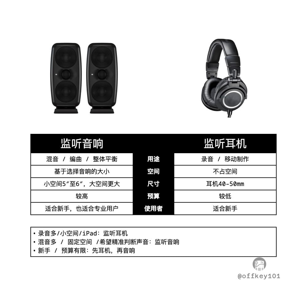- 音响用来混音时听整体平衡,判断低频/空间感。