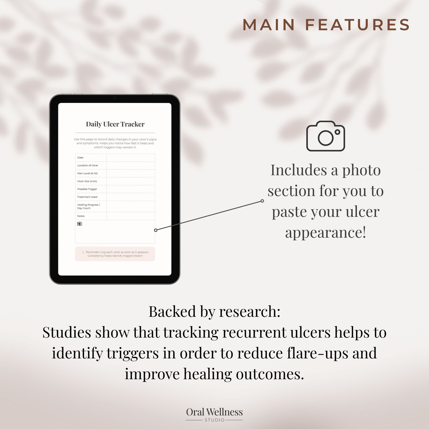Created by an Oral Medicine Specialist, this tracker blends clinical insight with a calm, premium design — making it easier to document episodes, monitor lifestyle factors, follow treatments, and share progress with your healthcare provider.