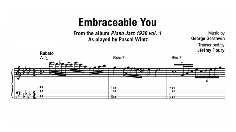 All sheet music are note-for-note transcriptions, with chord symbols, of Pascal Wintz's complete recordings, that you can download in PDF format.