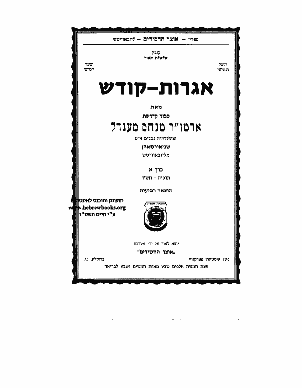 אגרות הקדוש ספר מהוצאת הרבי מילובביץ