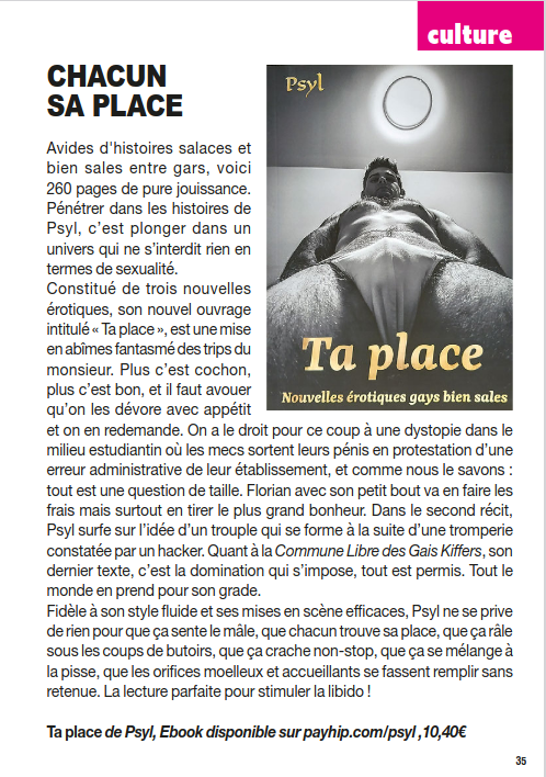Nouvelles érotiques gays déviantes, kinky, fétichistes, hard, SM... J'écris ce qui me fait bander et c'est bien sale! Si t'es un porc aussi ça va t'exciter pareil! Gros kiffs: mecs virils velus et musqués, mâles alphas dominateurs et clébards obéissants. Ici, c'est les odeurs de bite et de cul, le sperme, la pisse, les mollards dans la gueule et aussi, parfois, juste deux hommes qui s'aiment...