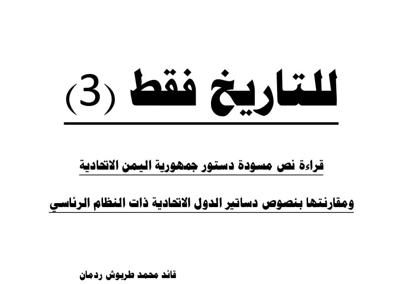 للتاريخ فقط (3) قراءة نص مسودة دستور جمهورية اليمن الاتحادية ومقارنتها بنصوص دساتير الدول الاتحادية ذات النظام الرئاسي