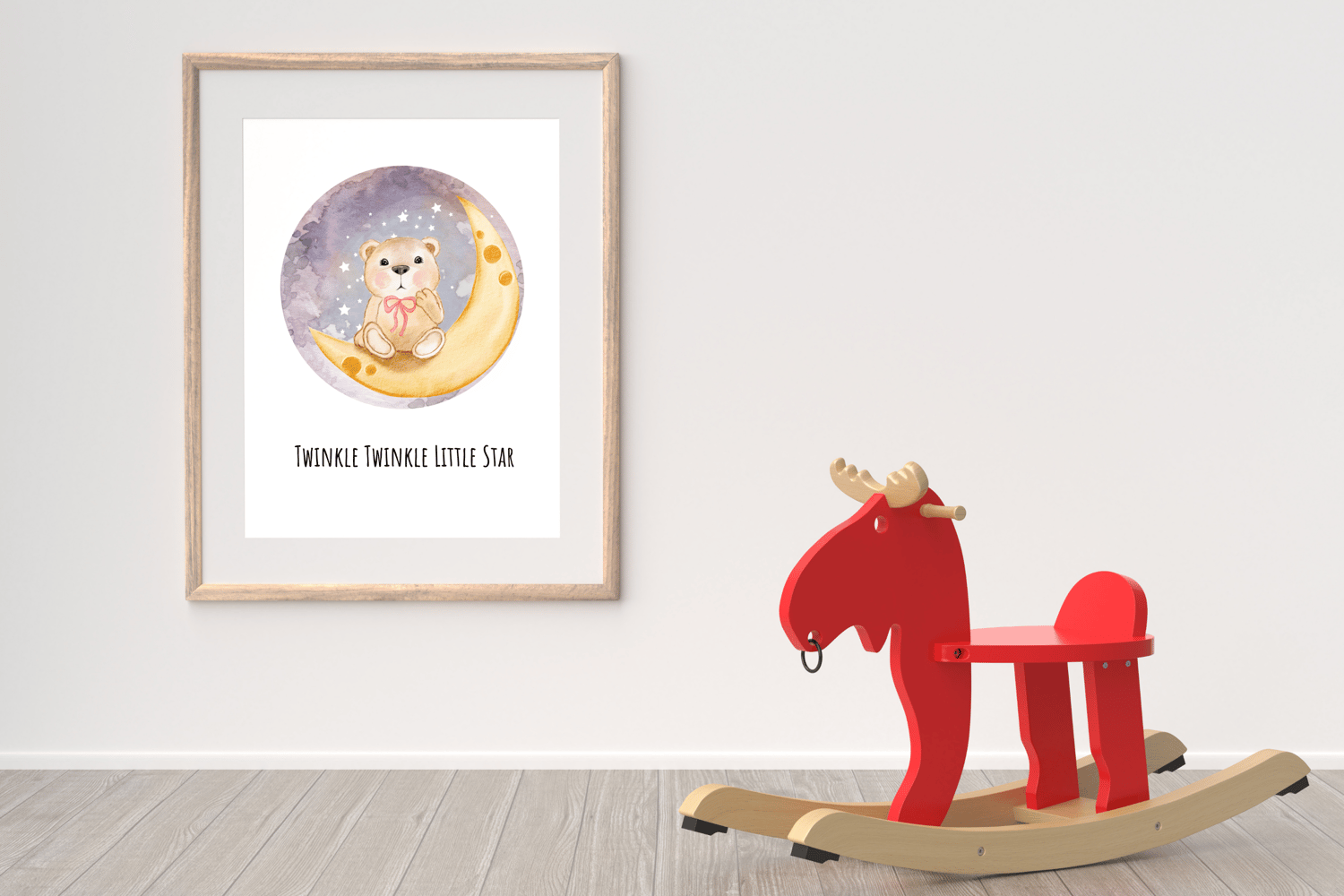 Cute Bear on the Moon Image with Nursery Rhyme “Twinkle Twinkle Little Star”–Lovely Nursery Printables-Nursery-Printables-Nursery Rhymes-Lovely Baby Gift