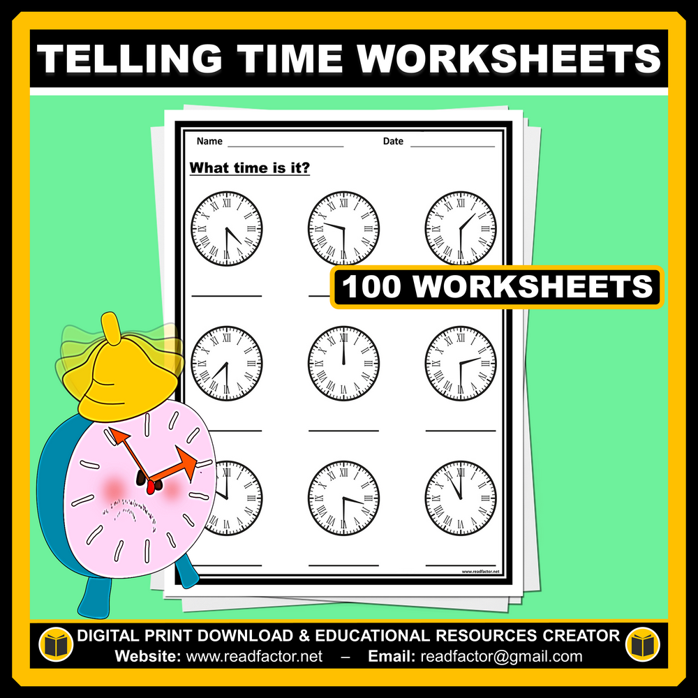 100 Telling Time Worksheets Challenge Activity For Kids
