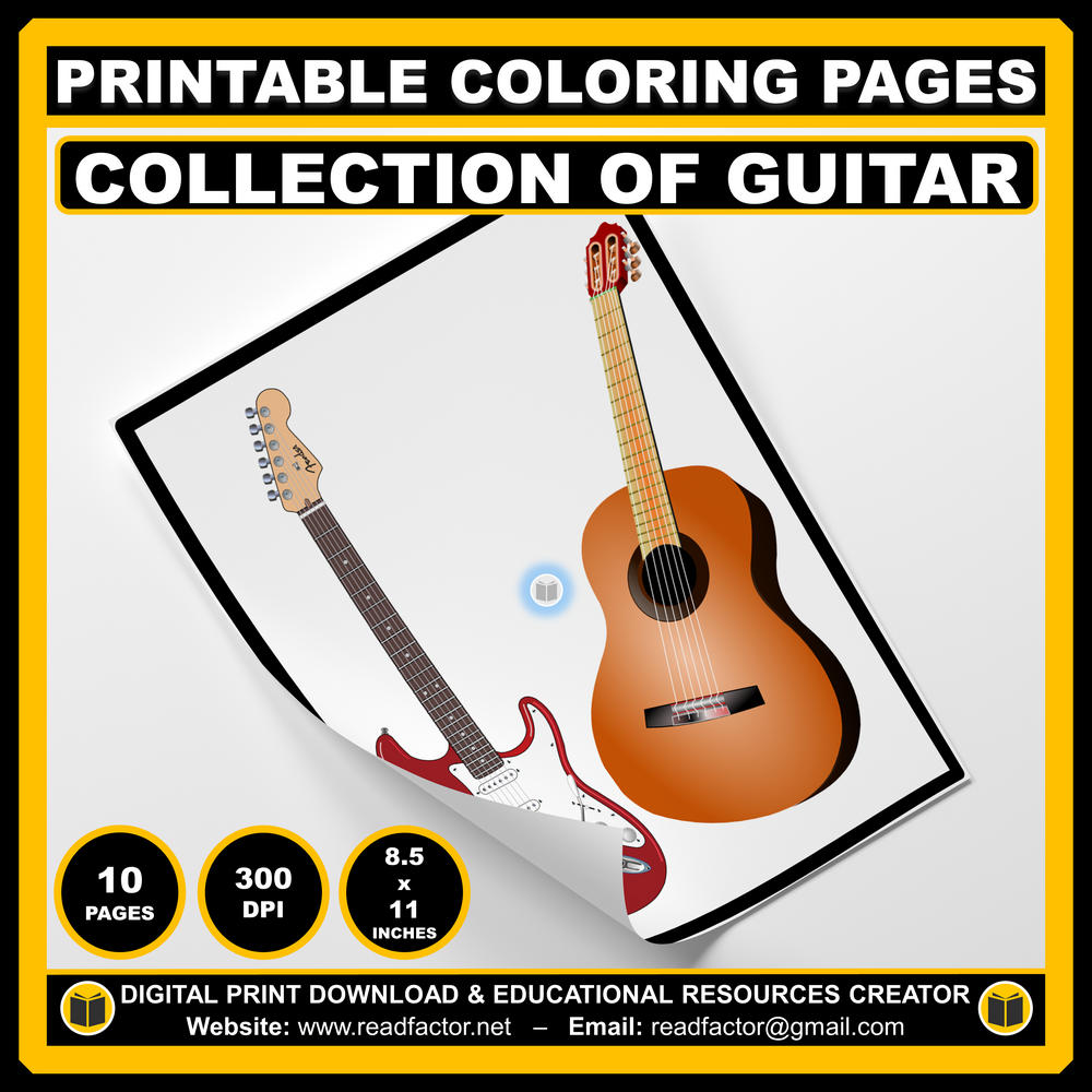 10 Printable Collection of Guitar Coloring Sheets