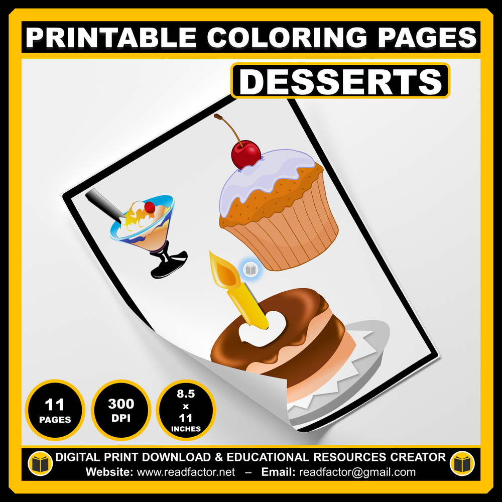 11 Different DESSERTS Coloring Pages