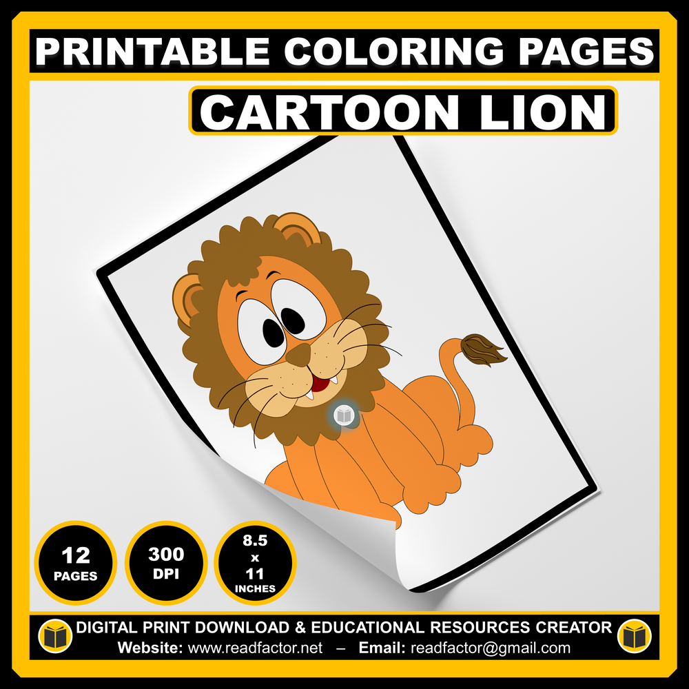 12 Different CARTOON LION Coloring Pages