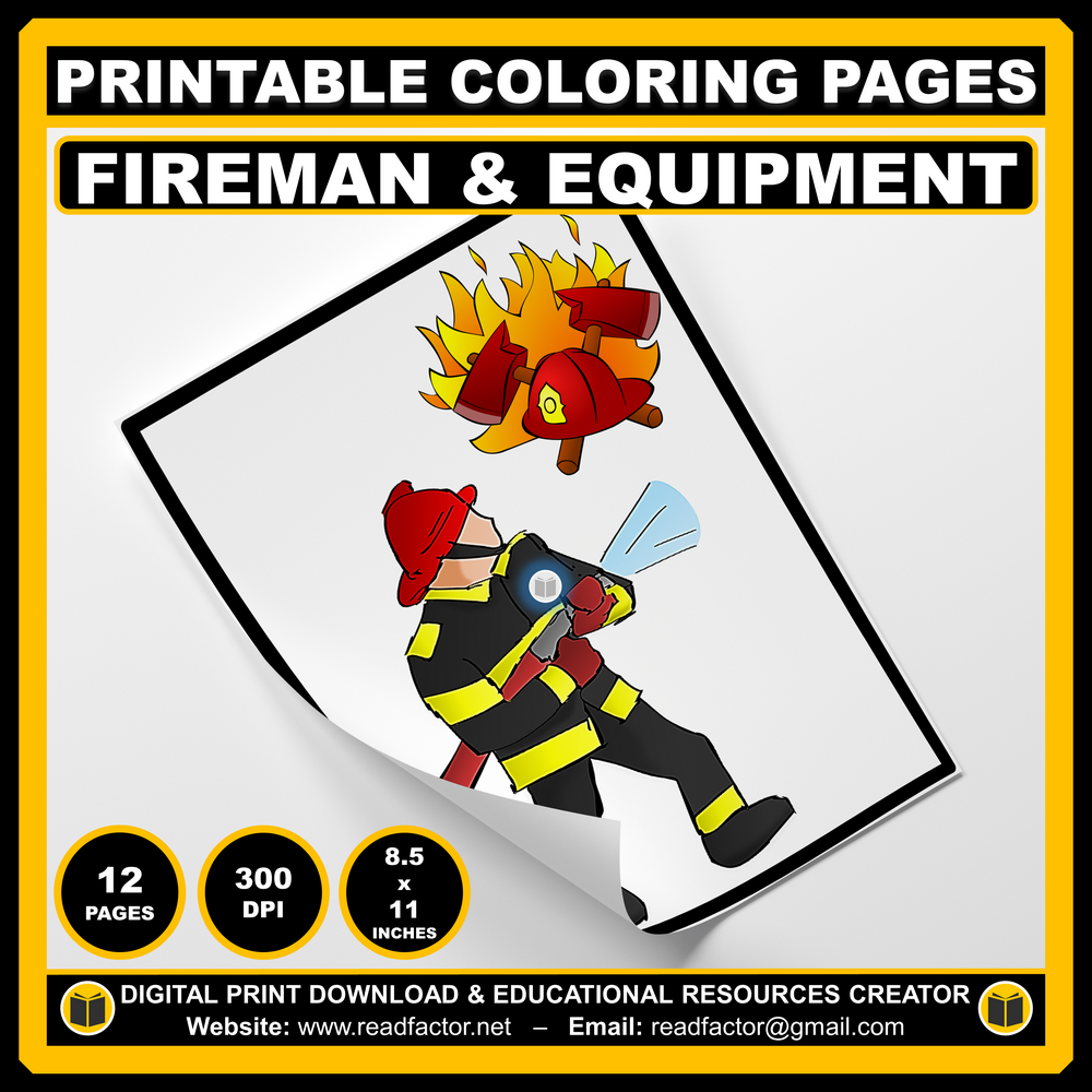 12 Different Fireman and Equipment Coloring Pages