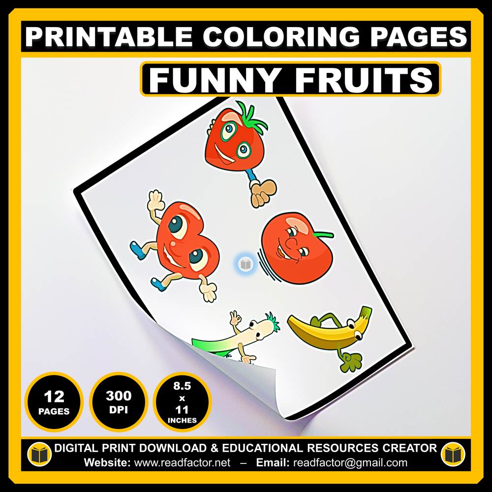 12 Different Funny Fruits Coloring Pages For kids