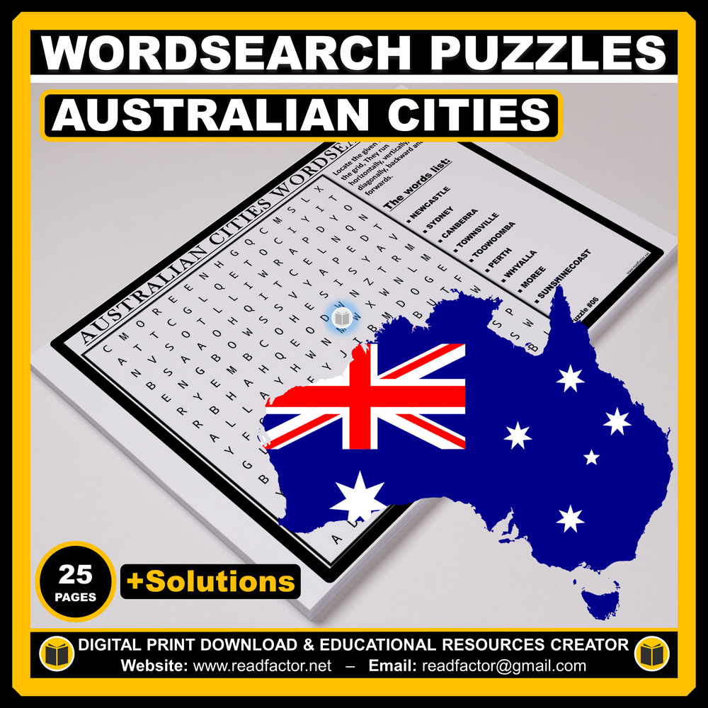 AUSTRALIAN CITIES & MIXED Word Search Puzzles 25 Worksheets + Solutions