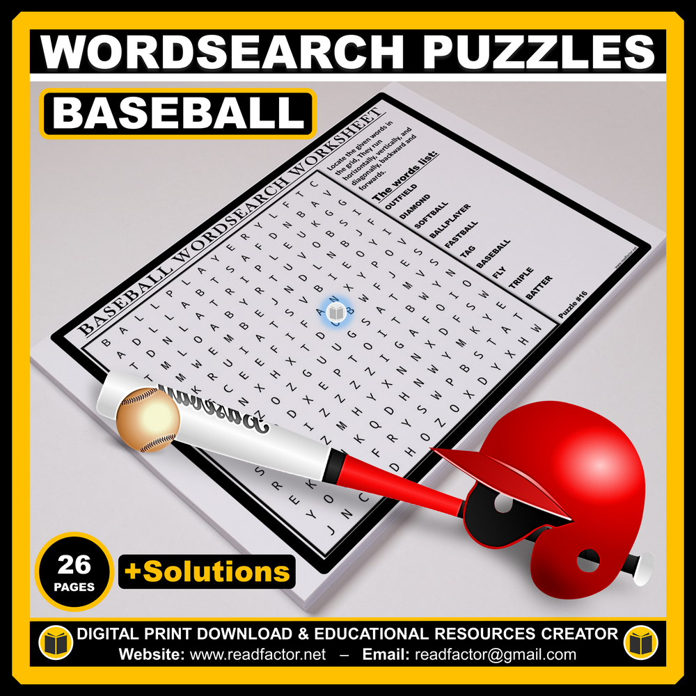 BASEBALL Word Search Puzzles 26 Worksheets + Solutions
