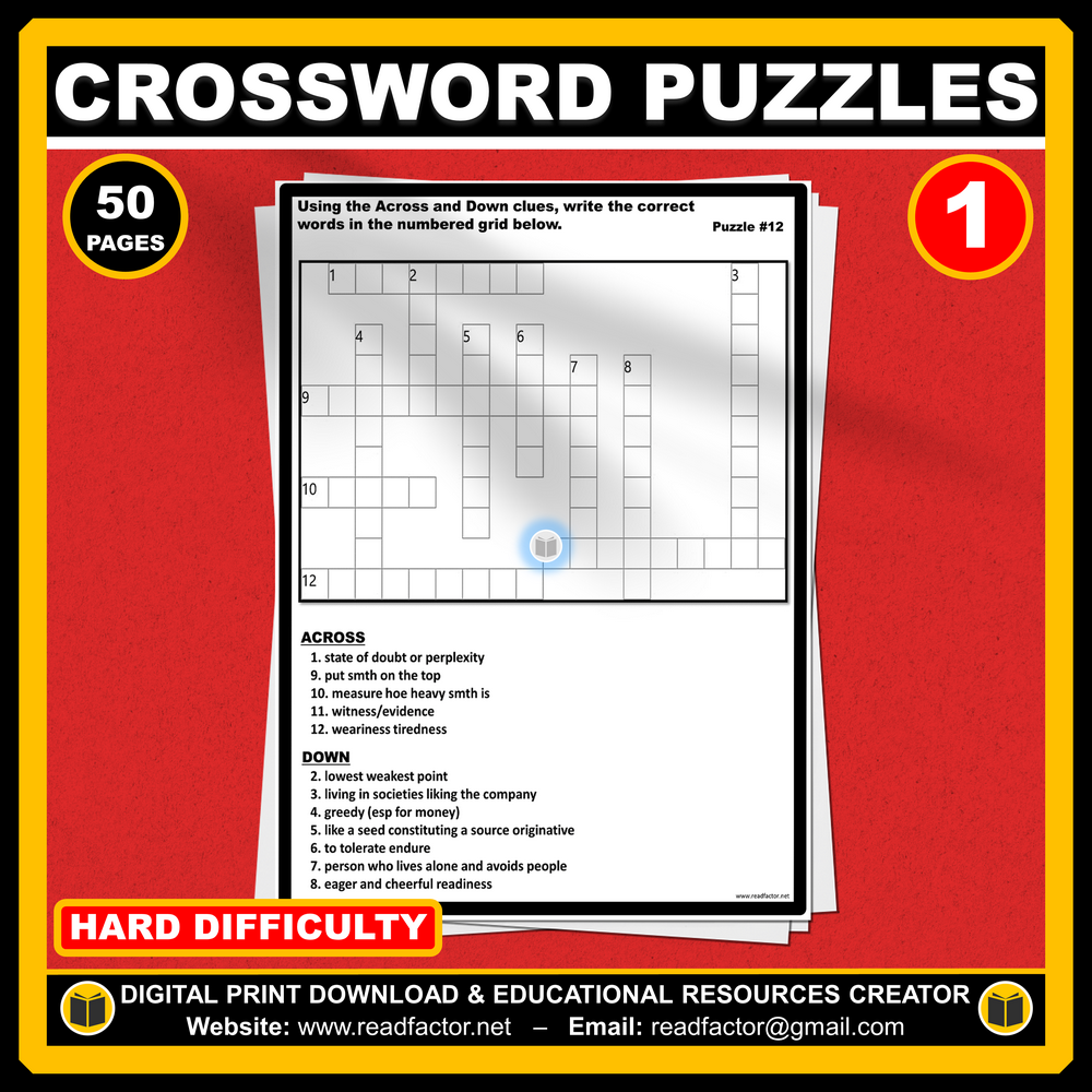 Vol 01; 50 Crossword Puzzles Hard Difficulty