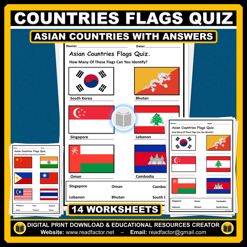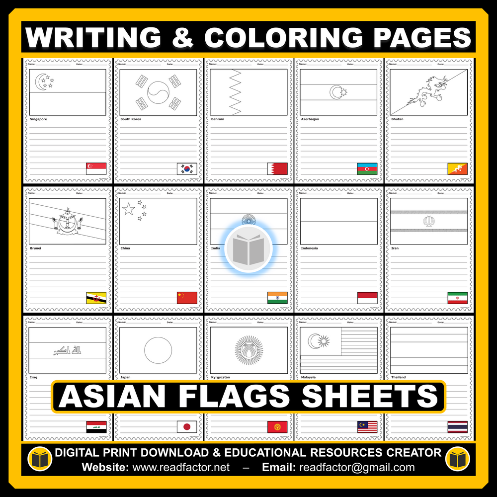Asian Countries Facts Activity and Flags Coloring - 42 Worksheets