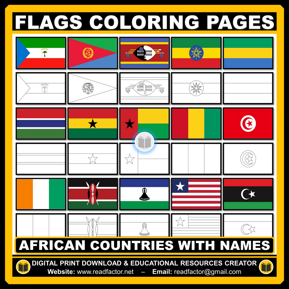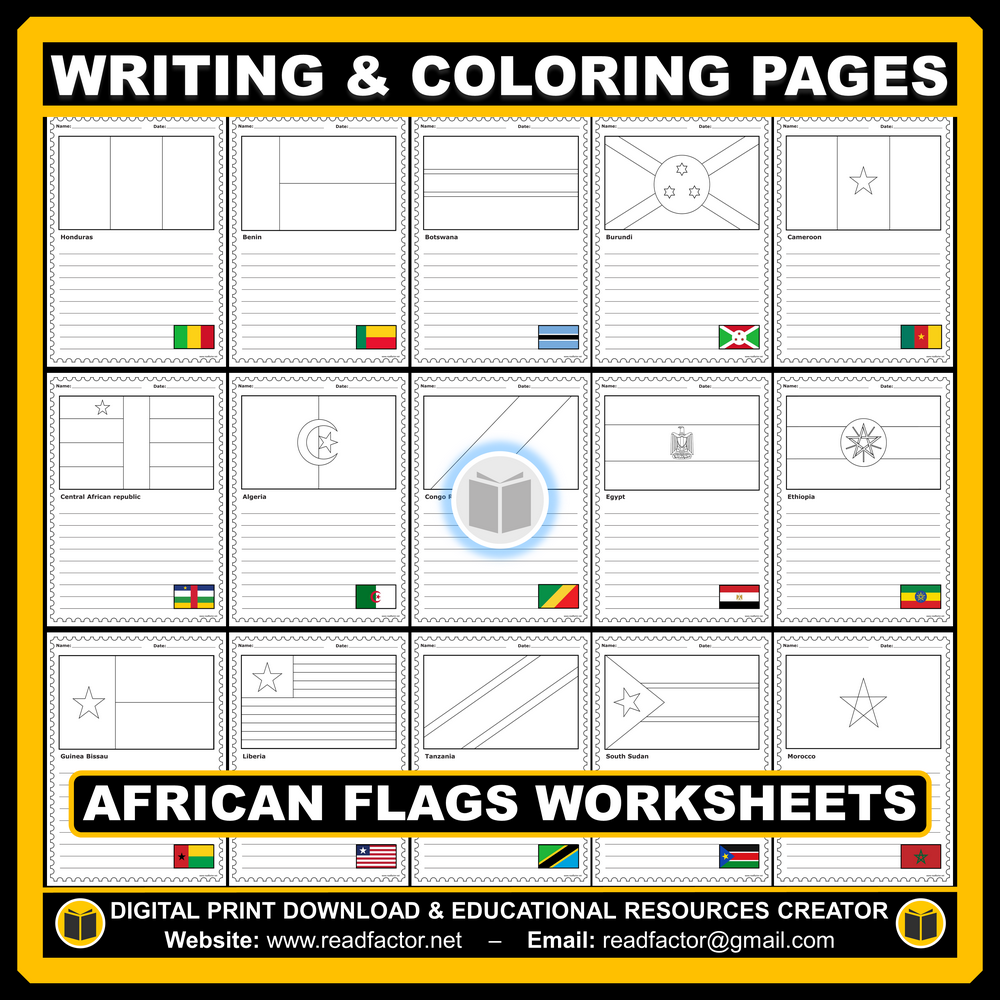 African Countries Facts Activity and Flags Coloring - 54 Worksheets