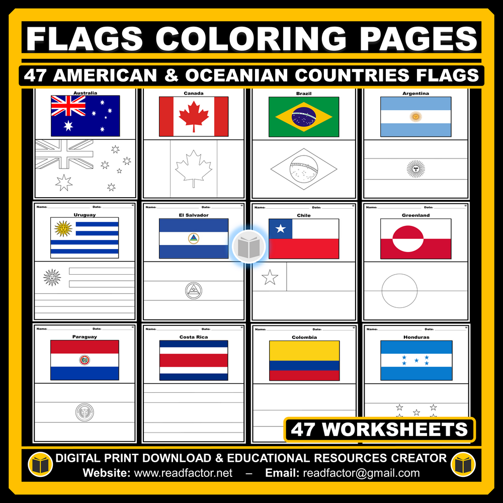 Flags Coloring Pages of Americas & Oceania Countries With Names