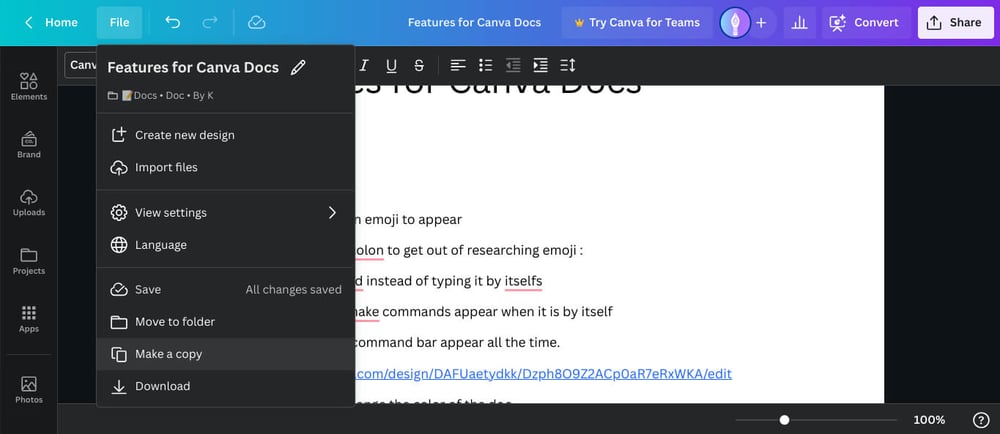 Canva added a new feature called Canva Docs. Canva Docs are a single doc that you can edit like with Google Docs and Microsoft Word. I think they are best for blog posts and video scripts.