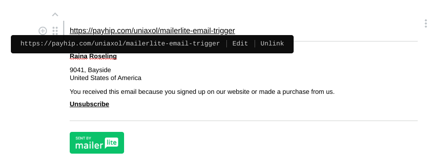 If you use a link of a webpage you made with Mailerlite, make sure there is a "https://" at the beginning of the URL when it is in the Link box.