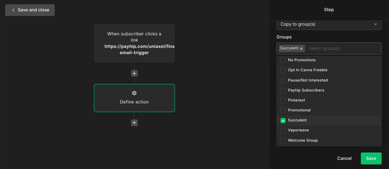 So then when sending emails you can set conditions to send an email if the person is in a group or has a tag. People that are in a group will receive the email, while people that aren’t will receive a different one.