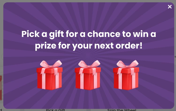 This is the most common type of gamified pop-up. You spin a wheel and it stops on one space that could give you a prize.