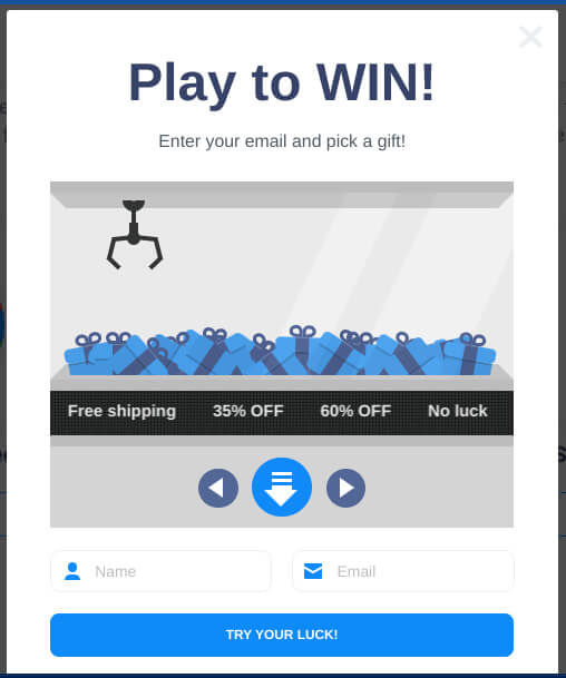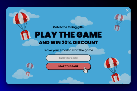 Gamified Pop-ups are interactive pop-ups with short games in them. They can really increase your email list and conversion rate. They will ask your website visitors to enter their name and email to allow them to play the game for a prize