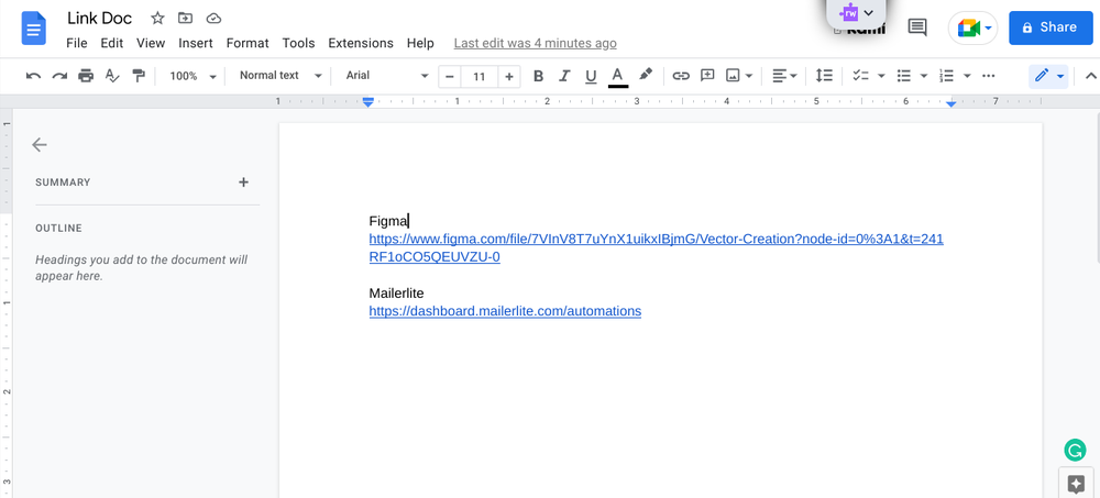 Make a copy of your website tools' links and paste them on a digital notebook like Google Docs, Notion (Affiliate Link), or Microsoft Word, or your organization tools like Asana, Click-up, etc. You should also write a title above the link to explain what the tool does. This method is useful if you have staff and for your biz guide book.