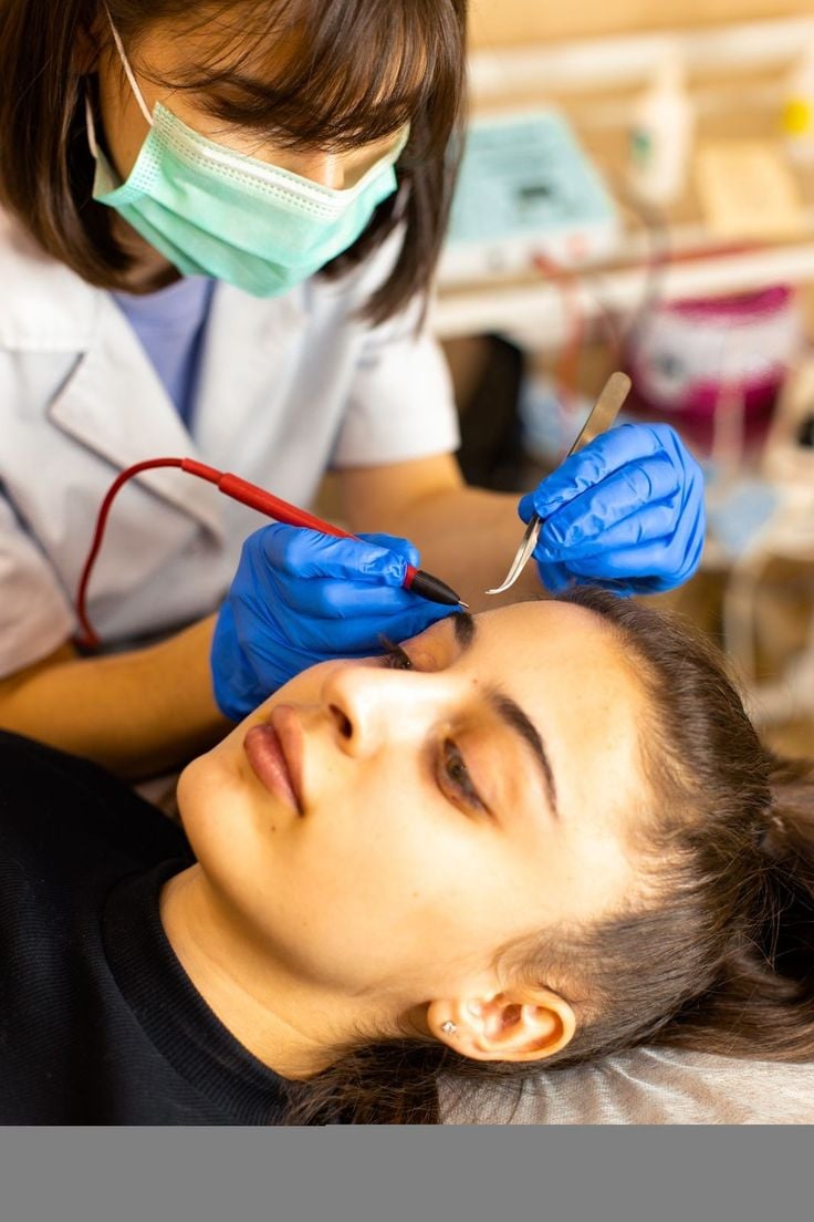 During an electrolysis session, a very fine needle is inserted into the hair follicle. An electrical pulse is delivered to destroy the growth center of the hair. This process is repeated for each individual hair. Depending on the density and size of the treatment area, multiple sessions may be required.