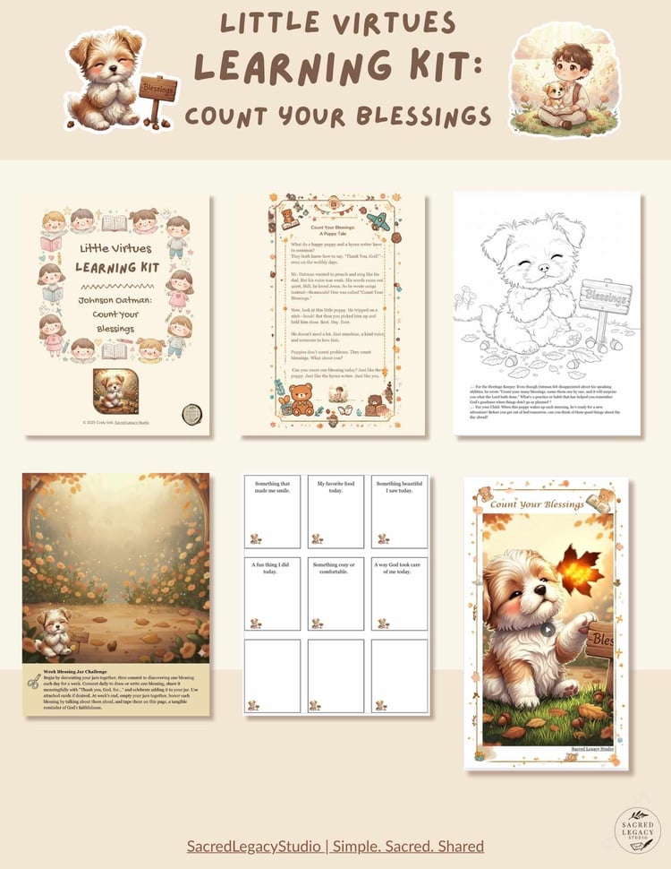 Sacred Legacy Studio is dedicated to connecting generations by Remembering faith, family, and heritage with heartfelt stories, art, and activities. Our Little Virtue Kits are designed as "Open-and-Go" creative sessions that blend wisdom, understanding, and knowledge encompassed with love. Author of the "Hymn Stories for Little Hearts" series for children aged 4–6. Simple. Sacred. Shared.