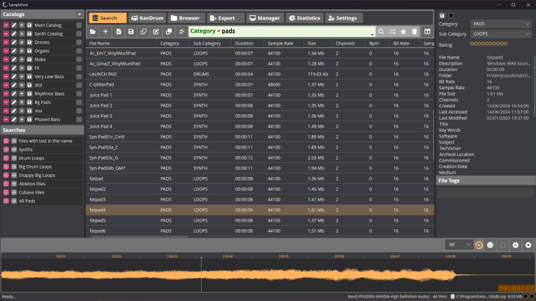 SampleSort is an audio sample manager and search tool for Windows, MacOS & Linux Designed for use by musicians, producers, DJs and foley artists. Scan SampleSort eases working with large audio sample libraries by scanning your hard drives ...