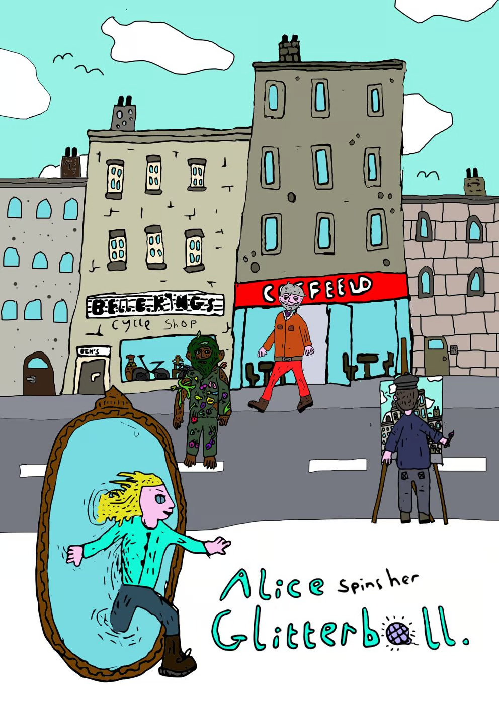 A cover design I did for my Nana's poetry pamphlet, 'Alice spins her Glitterball', which centres around Carrol's Alice, and her escapades in the modern world, with a particular focus on Through the Looking Glass. Find it here.