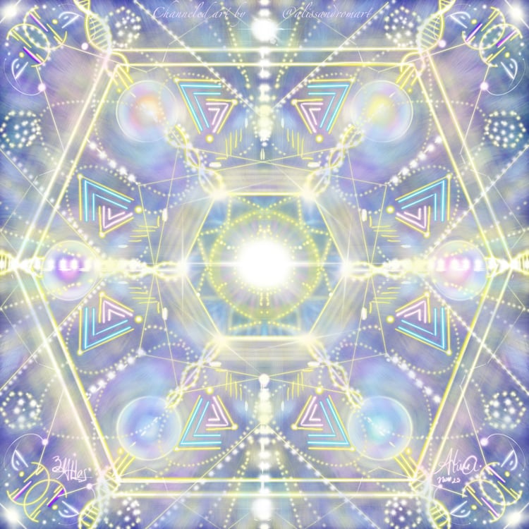 El lenguaje con códigos de luz son vibraciones de energía canalizada provenientes de las altas esferas de luz, y están asociados a colores, formas símbolos, sonidos, geometrías y patrones intrincados, donde cada uno de estos símbolos actúa sobre todos complejos del ser (cuerpo, mente y espíritu) para el más alto bien del ser que los solicita o canaliza, podemos sintonizar con su información sutil y poderosa a través de la meditación. Este lenguaje es decodificado a través del corazón, alma y conciencia.