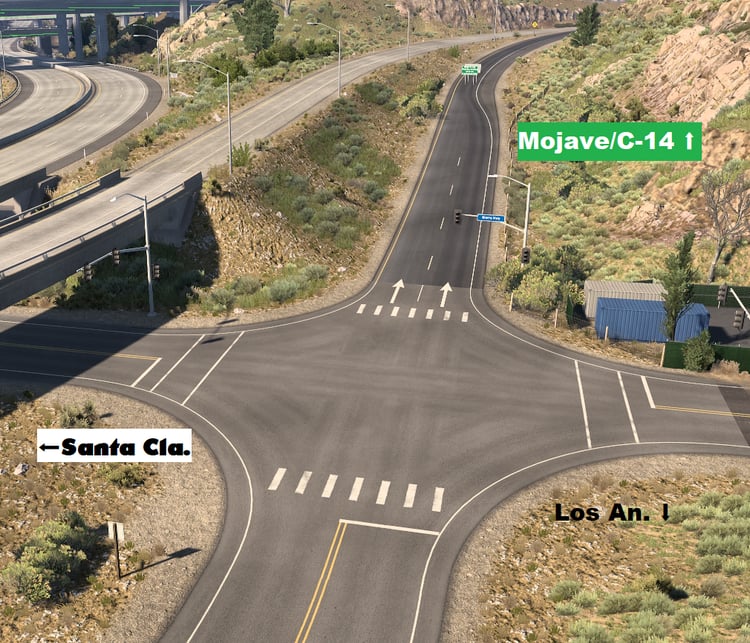 I re-marked the car routes at the interchange to the left of this junction and released that as 1.4 because I knew I was keeping people waiting too long. So now v1.5 will have this finished junction and possibly Santa Clarita (as roadmap below says), and v1.6 will probably be the Los angeles expansion although that may be done in 2 parts.